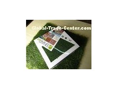 Generally our size is 30x 30 x 3.5cm, our color is green/ green+yellow, main grass is made by PE, supporting grass is made by PP.The turf fiber is 12800Dtex,the height of turf is 25mm. 11pcs will be a SQM.